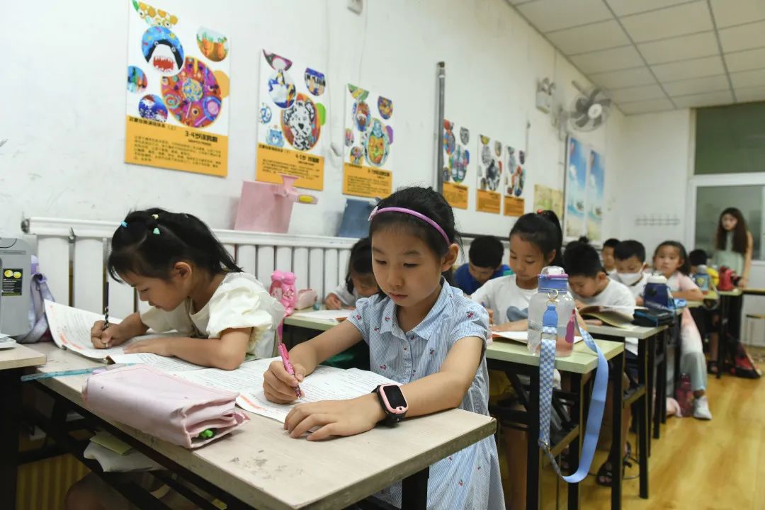 公司,五个托管班级管理井然有序,在老师的带领下,孩子们认真地进行着经典诵读,有序开展课外活动,同时生活上提供午餐、晚餐等科学健康的饮食服务,以及干净舒适的床铺,打造温馨舒适的学习午休环境。