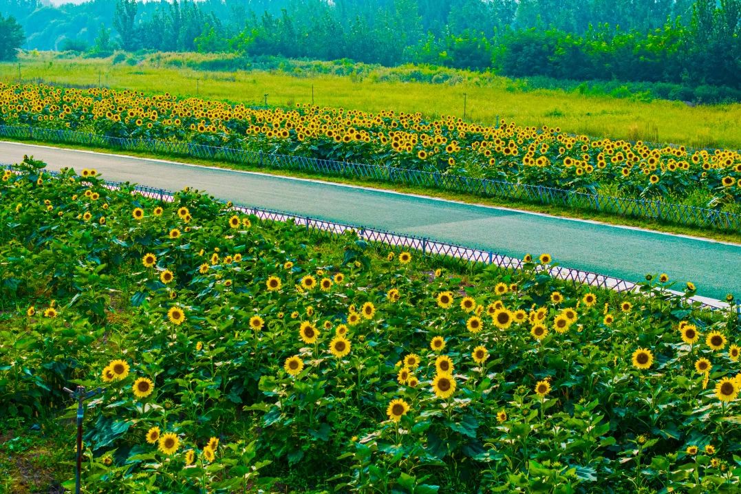 直接导航“济南黄河大桥”,过桥后立即右转,沿着黄河北大堤继续向前直行2-3公里,道路左边就能看到大片的花海。