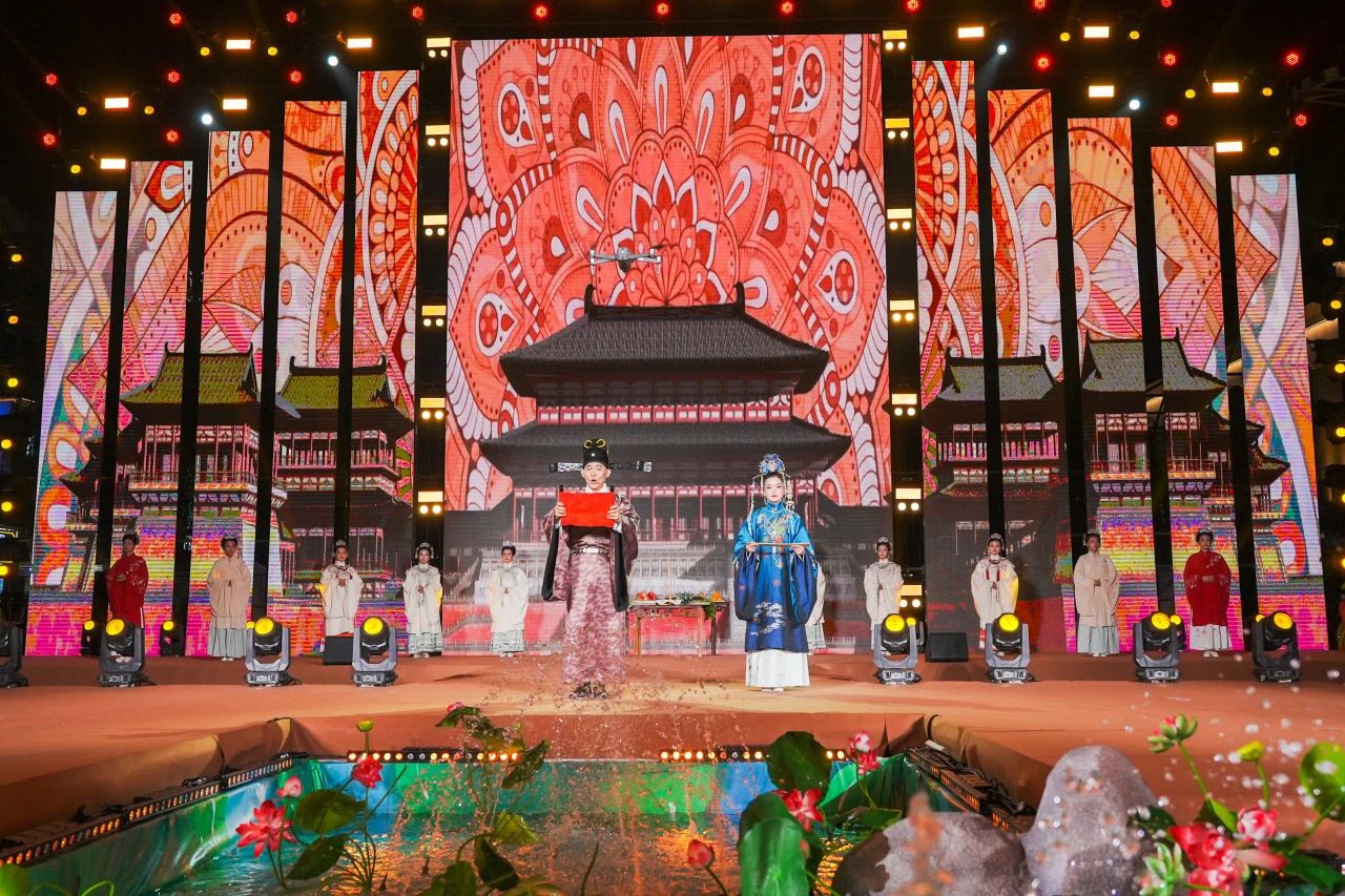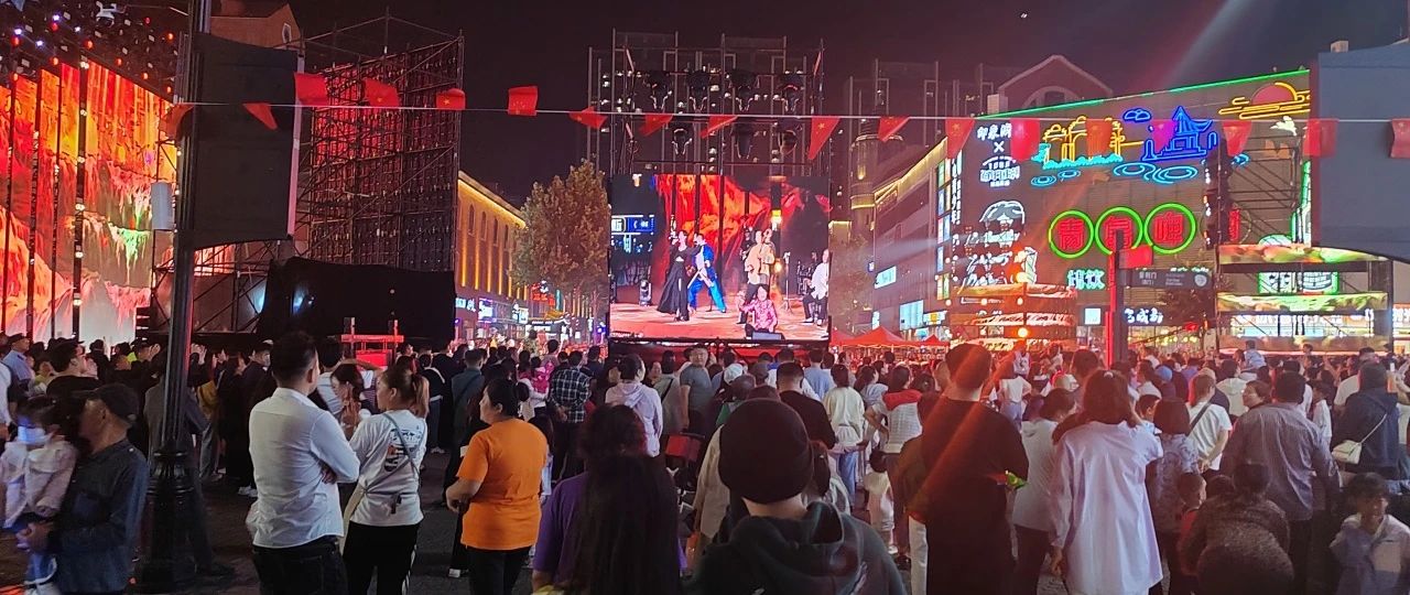 音乐、舞蹈、杂技、灯光秀……街区上流光溢彩、灯火辉煌,舞台上衣香袂影、霓裳起舞,市民游客共赴秋月古风浪漫,共享中国文化之美。今年中秋拜月大典将中秋佳节所蕴含的传统习俗、乡愁思念和家国情怀融为一体,以歌舞、乐器、戏曲曲艺非遗为主要载体,唯美、浪漫,创新打造具有未来感的全景式舞台,在虚与实、古与今、远与近的巧妙转换中实现沉浸式体验。在活动现场,已经连续参加六届拜月大典的市民王鹏飞告诉记者:“今年我把刚1岁的宝宝也带来了,文化熏陶要趁早,以后还要年年来,这样才能不忘初心嘛!”