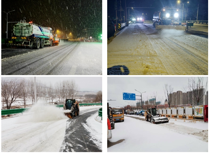济南金曰公路工程有限公司承建的国道309、济南黄河公路大桥、国博城等项目立即启动应急预案,开启“机械+人工”的联动除雪模式,对交叉路口、车辆密集、人员密集等区域进行重点清理,雪中除雪效果显著。截至目前,共计出动应急队伍150余人,调配自有和所在辖区街道办除雪机械设备30余台(套),撒布融雪剂30余吨。全力保障了重要干线道路通畅,确保了周围居民的安全通行。