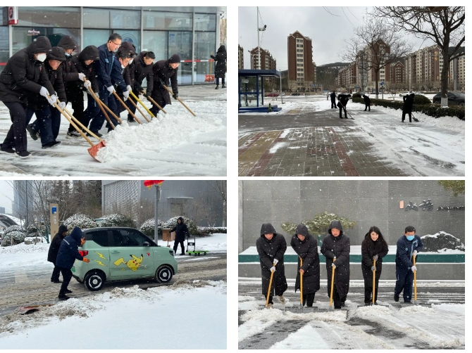 济南福仁城市运营服务有限公司密切关注气象预报及预警信息,充分做好清雪除冰准备工作,及时储备除雪工具、融雪剂、盐水、等应急物资,做好人员和设施设备的防冻保护工作,加强各类管道、线路的巡检巡查,做好水电暖安全运行保障工作,及时排险除患,严防安全事故发生,并及时在业主群做好特殊天气的温馨安全提示等。降雪后,各项目以雪为令,迅速启动冰雪天气应急预案,立即部署除雪清雪工作,把主干道、坡度区域、停车场出入口、台阶首先作为清理重点,确保业主安全出行及车辆进出安全。