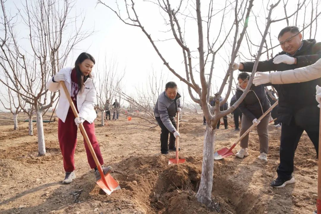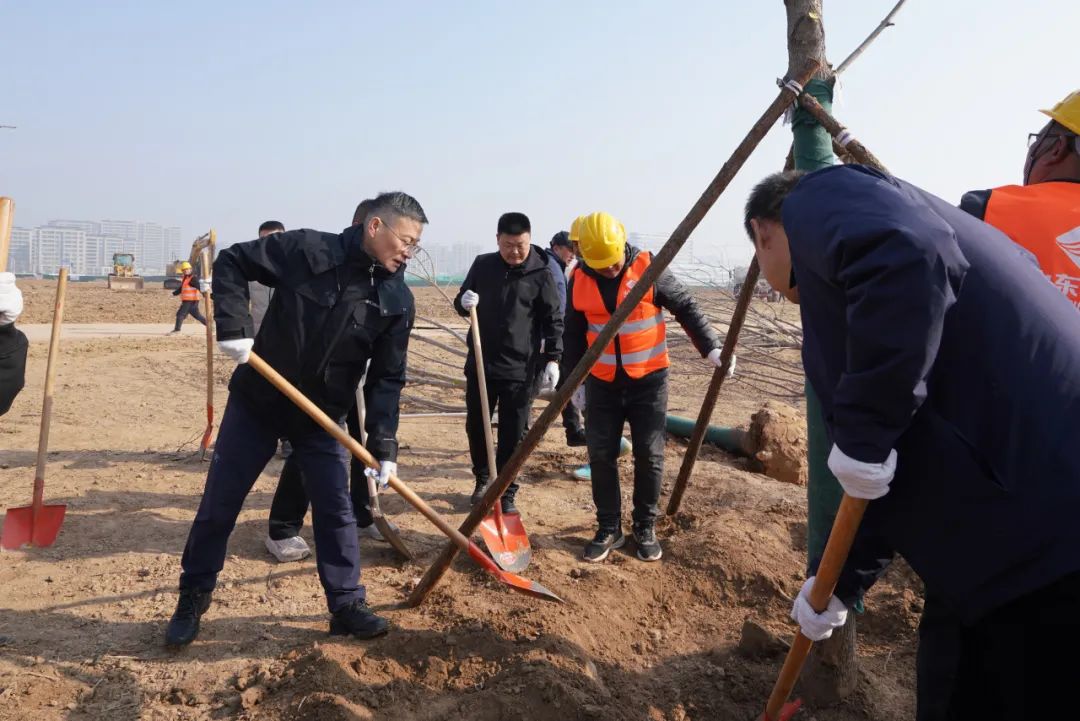 植树现场,参加植树的干部职工热情高涨、干劲十足,在工作人员的指导下,大家相互协作、密切配合,扶直树苗、挥锹铲土、浇水植树、踩实压紧,认真细致地完成每个环节。在全体人员的共同努力下,种下数百棵树苗,为起步区黄河岸边增添了一抹春意,为泉城济南再添一抹绿色。