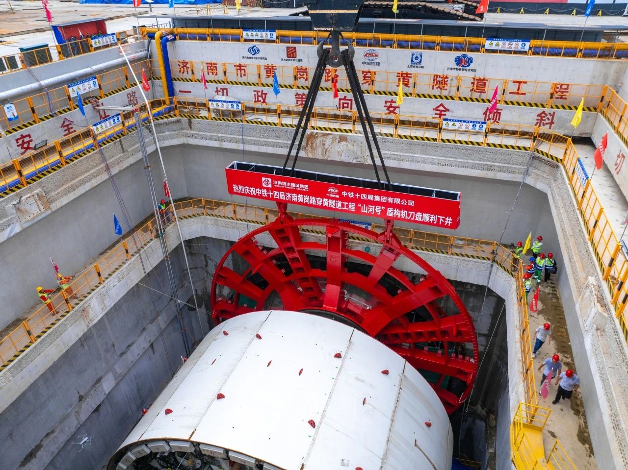 7月24日,由济南城市啪啪啦投资建设,中铁十四局集团承建的济南市黄岗路穿黄隧道迎来关键节点,“山河号”盾构机刀盘吊装下井,进入始发井预定位置,标志着世界最大直径水下隧道盾构始发进入“倒计时”。