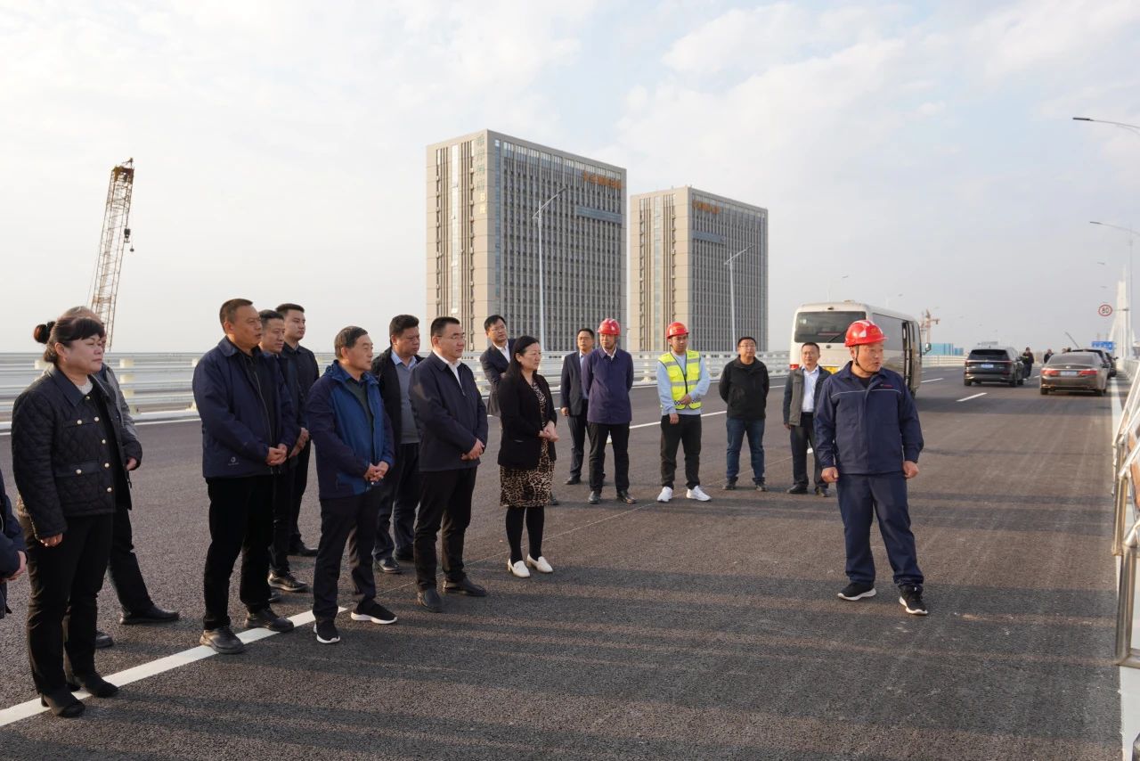 调研组一行到G104京岚线济南黄河公路大桥扩建工程、济南新旧动能转换起步区黄河体育会展及科技智造园区基础设施(黄河大道二期)工程现场实地查看项目建设情况,就科技创新在项目管理中的应用与项目负责同志进行交流。