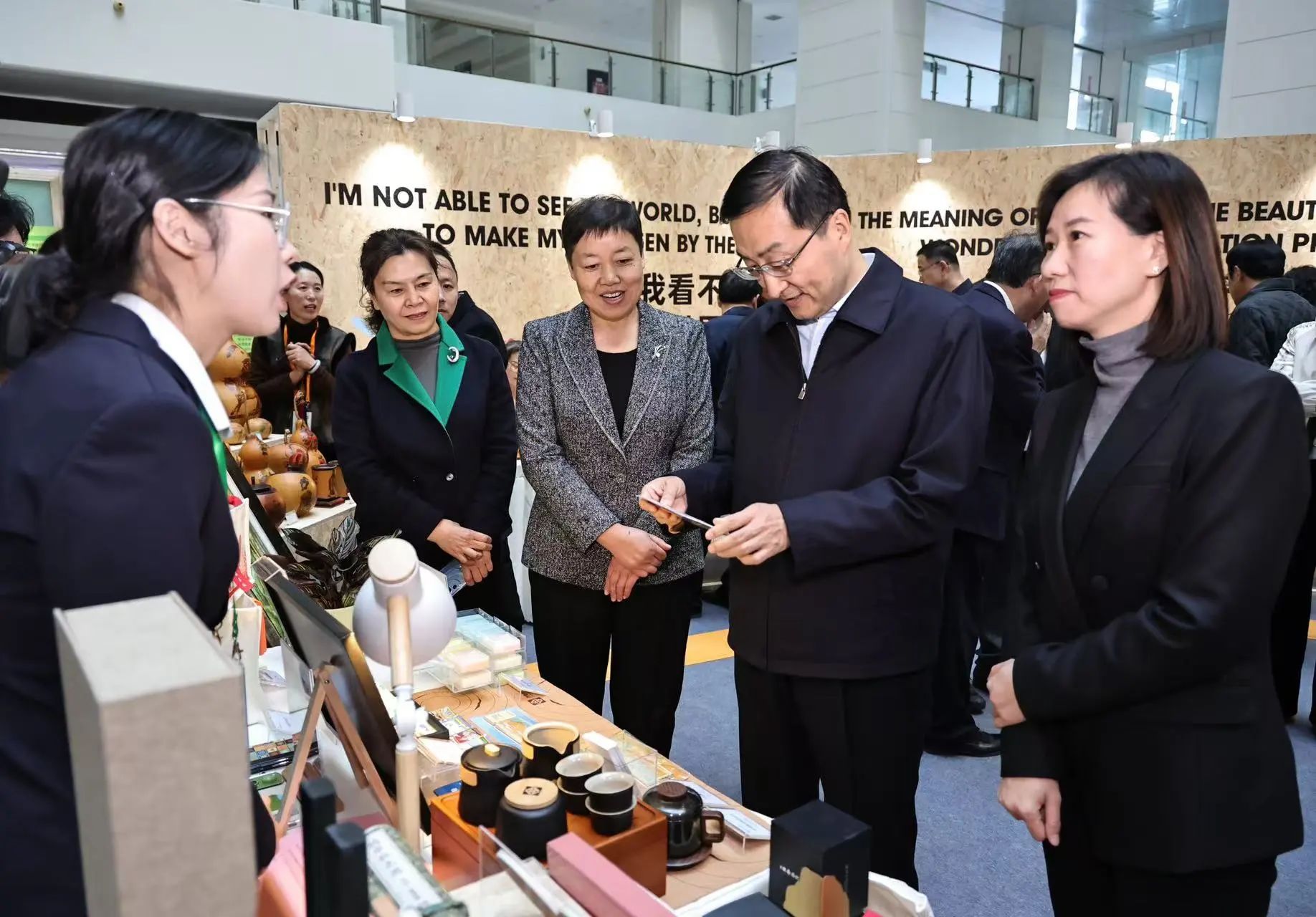 活动现场,刘强等先后观看了主题先导片和扶残助残成果展,了解我市残疾人事业高质量发展的生动实践;在扶残助残成果展区,了解济南优秀残疾人自立自强的励志故事,及济南机关、事业单位、国有企业和社会各界在扶残助残工作中取得的成果;在爱心义卖展区,观看残疾人文创产品展示,与相关机构负责人深入交流,了解残疾人就业创业有关情况。