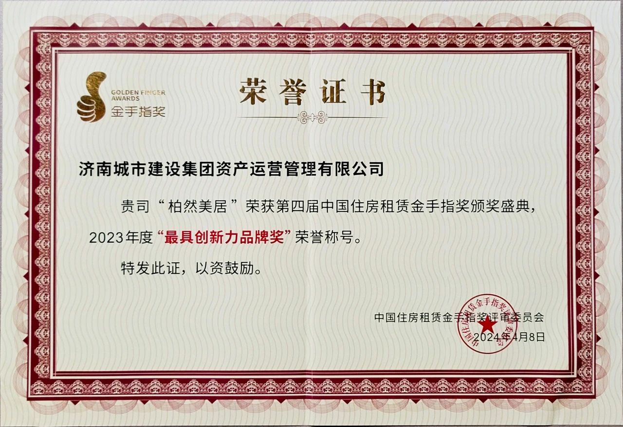 近日,在2024中国住房租赁企业家领袖峰会暨第四届白云山论坛上,公布了2023年度“推动中国住房租赁发展进程”系列榜单,济南城市啪啪啦资产运营管理有限公司成功上榜2023年度“推动中国住房租赁发展进程”百强企业,公司运营的保障性租赁住房“柏然美居”品牌荣获2023年度“最具创新力品牌奖”荣誉。