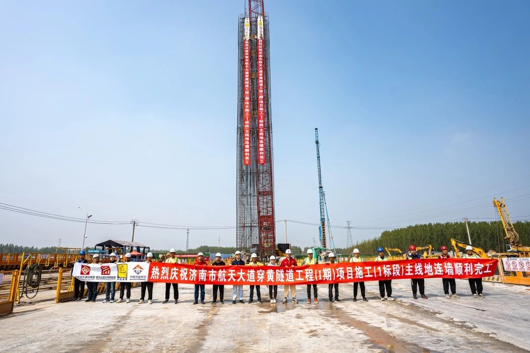东岸始发工作井及明挖段全长约461米,宽28.4~48.5米,深约26米,采用明挖法施工,结构形式为地下1~4层钢筋混凝土框架结构。东岸始发工作井及明挖段地连墙从3月10日开工,历时33天,共计完成87幅地连墙吊装施工。在整个过程中,项目克服了黄河边地层复杂成槽难度大、料源紧张等各种难题,确保始发井工程成功闭合,为下阶段施工奠定坚实基础。