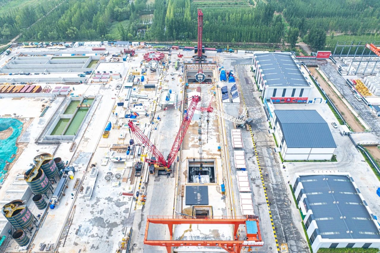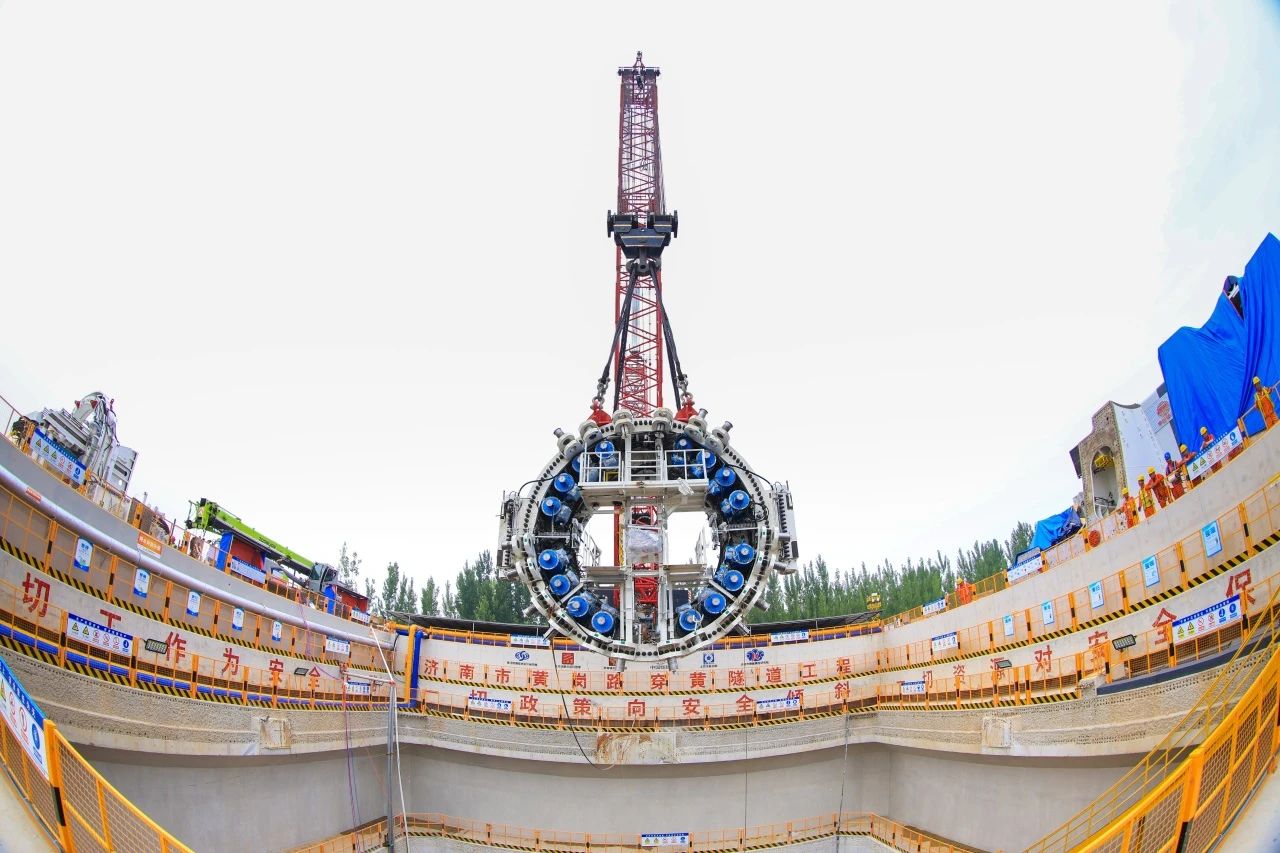 工程所采用的“山河号”盾构机,是世界在建最大直径泥水平衡盾构机,最大开挖直径17.5米,总长163米、重达5200吨、装机总功率12580千瓦,装配各类刀具306把,其中57把可实现滚刀齿刀互换,刀盘开口率53%,最大限度满足掘进所面对的复杂地层,盾构机总装达到世界先进水平。