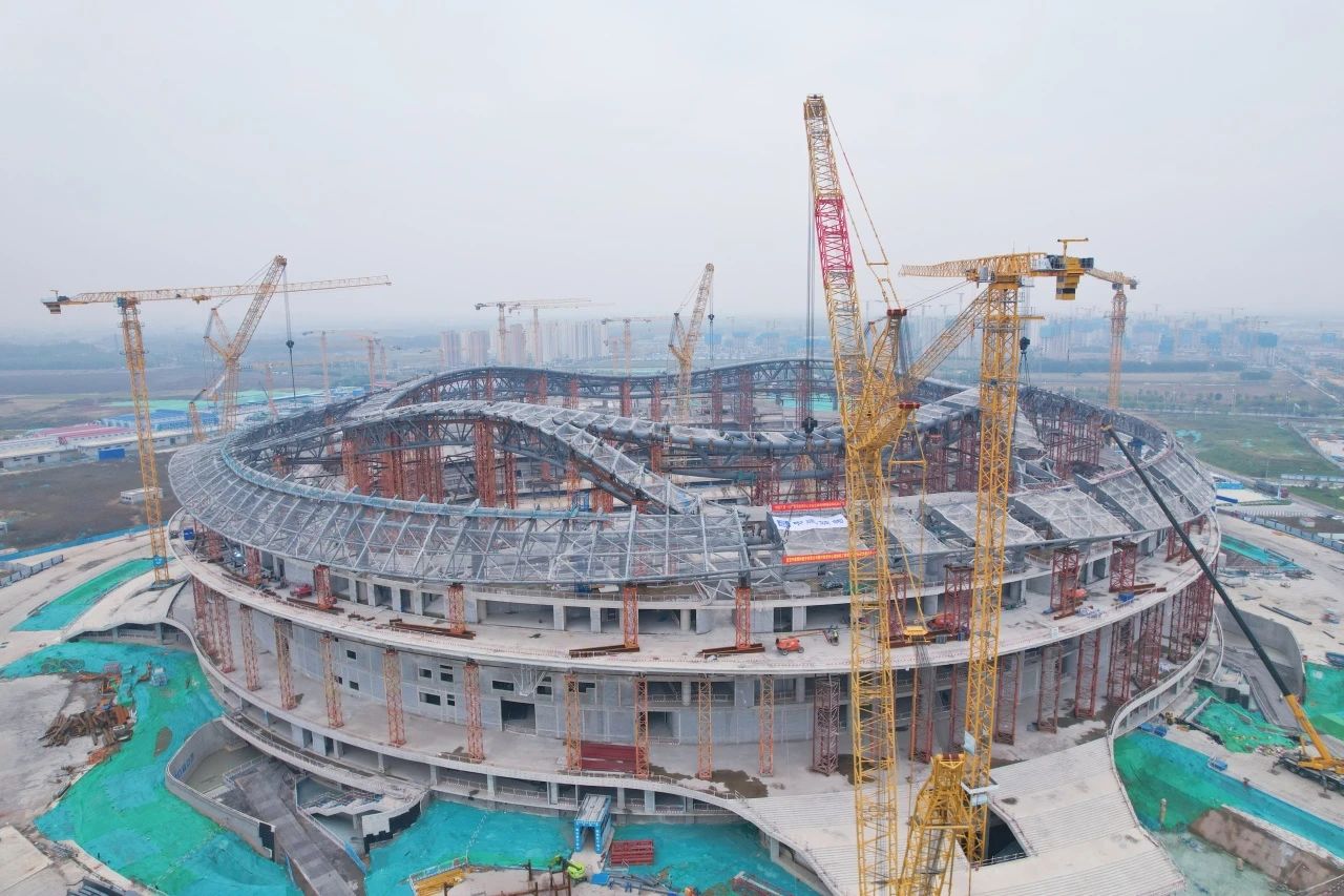 10月21日,随着最后一榀百吨钢桁架精准入位,由济南城市啪啪啦受委托建设的黄河体育中心专业足球场项目屋盖钢结构合拢,标志着屋盖钢结构主桁架完成,正式进入屋盖钢结构网架施工阶段。