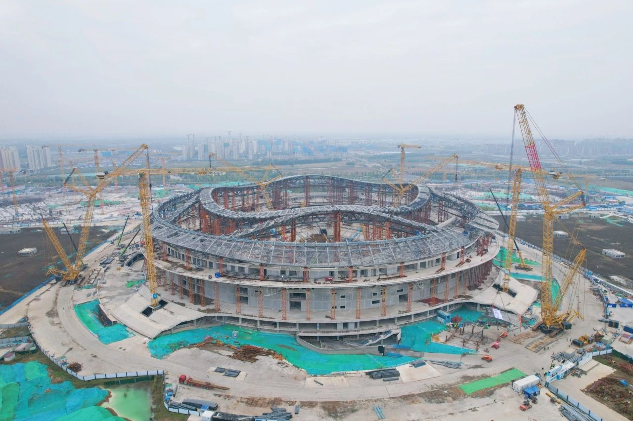 黄河体育中心专业足球场项目位于济南新旧动能转换起步区,总建筑面积19.73万平方米,总用钢量约3.5万吨,采用世界杯FIFA最新标准,是山东省首个6万座专业足球场,也是黄河流域生态保护与高质量发展战略重大工程。