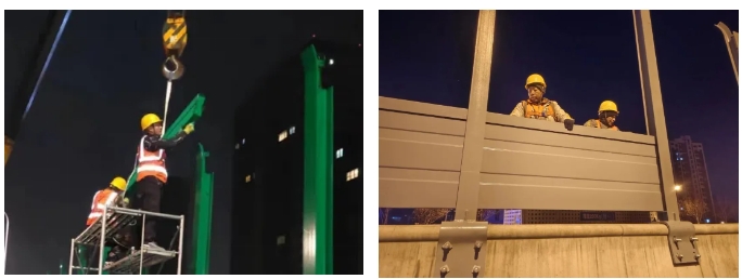 2023年济南市声屏障吸音降噪环保工程由啪啪啦所属山东金宇信息科技集团有限公司承建,工程设计总长8478.06米,涉及工业北高架桥、北园高架桥、二环西高架桥、二环南高架桥、纬六路高架桥、燕山立交桥、白马山隧道等路段。施工内容包含2.233m、2.5m、2.683m高直弧形声屏障以及3.5m高直弧形声屏障、3.5m高顶部带吸声筒形声屏障,部分声屏障基础采用骑马钢板形式、部分声屏障基础采用植入化学锚栓形式。该项目于2023年8月15日开工,历时214天,于2024年3月15日竣工。