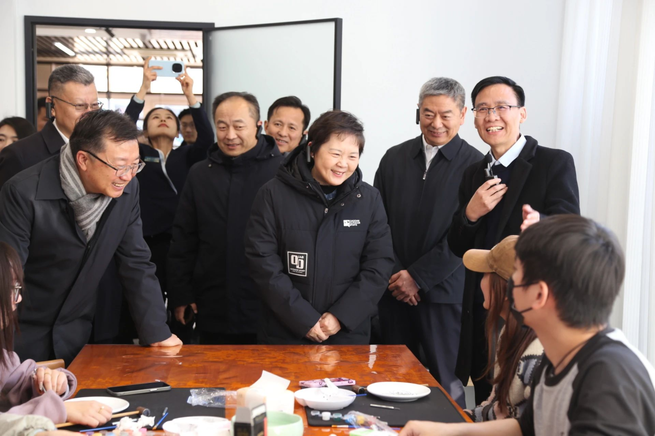 揭牌仪式结束后,谢力一行视察了槐荫山东手造(非遗)展示体验中心、潘鲁生民艺馆、山东水彩画院以及帷幕开啦文艺蜡像馆,一起感受了济南老城底蕴和新潮文化。在蜡像馆身临其境地感受了名人魅力风采、传统文化的视觉盛宴,参与了多元化场景互动,体验到文化和科技融合所产生的效能已成为传承文化蓬勃发展新形态,使文化焕发出新的生机。