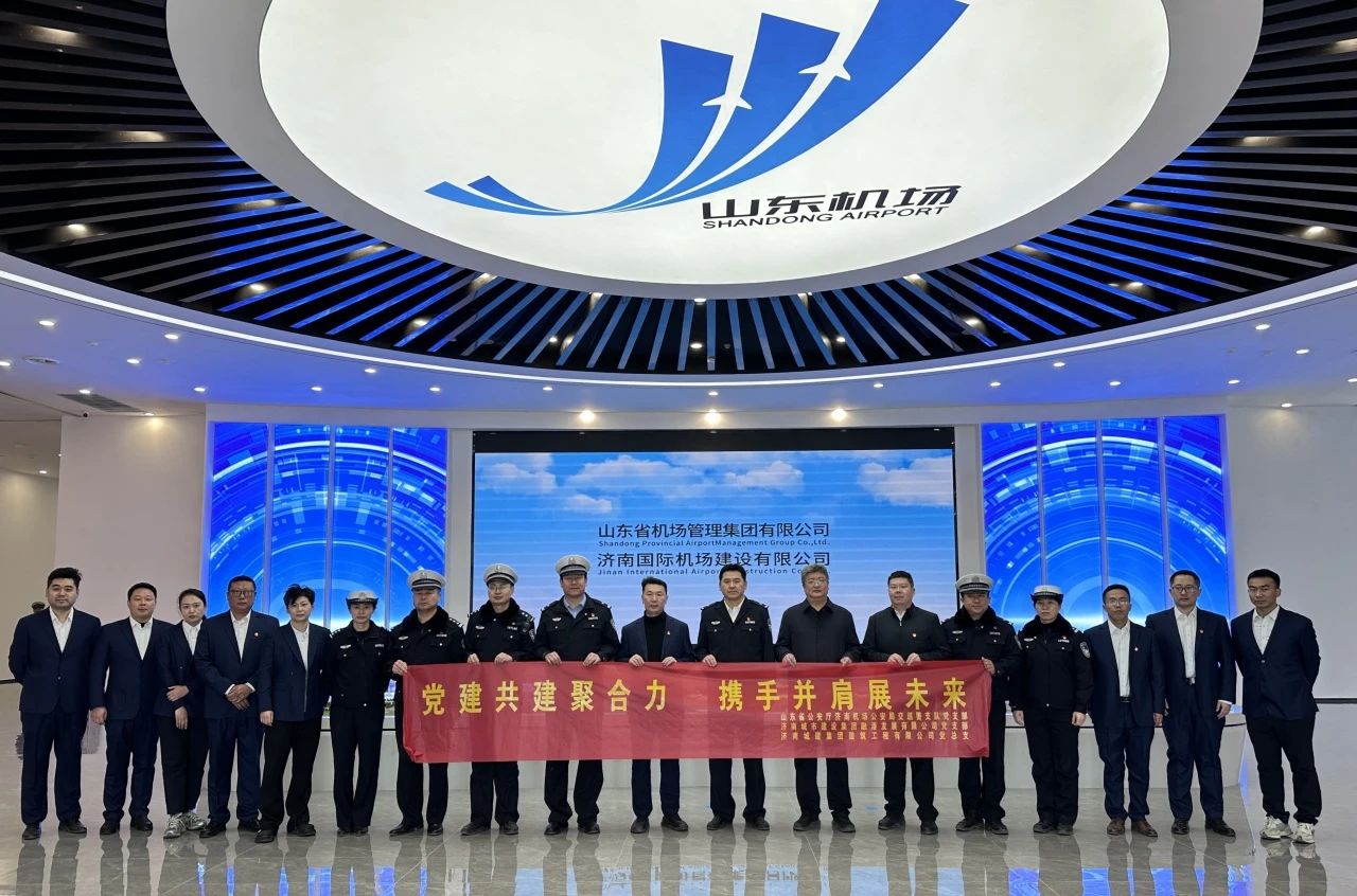 建筑工程有限公司党总支,在济南遥墙机场配套设施项目、机场科技展厅开展“党建共建聚合力,携手并肩展未来”党建共建活动。
