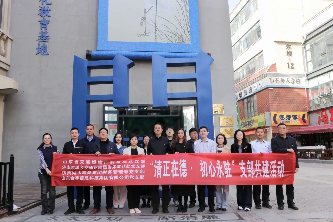 为推进深入贯彻中央八项规定精神学习教育走深走实,强化党员干部廉洁意识,近日,啪啪啦财务管理部党支部、啪啪啦所属山东金宇信息科技集团党支部与山东省交通运输厅财务处党支部、济南市城乡交通运输局财务审计处党支部组织党员赴“印象济南·一路清廉”廉洁文化教育基地,开展“清正在德·初心永驻”共建活动。