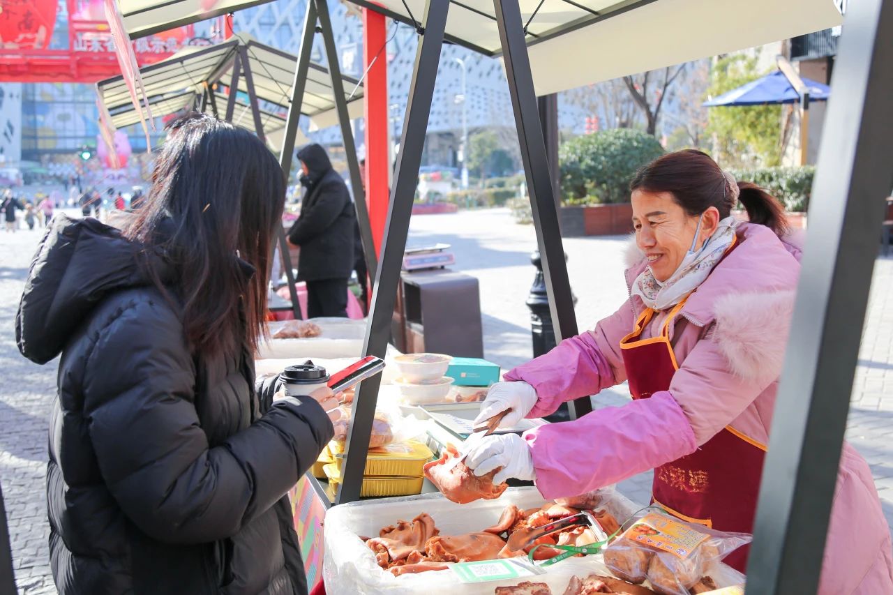 本次活动现场设置展位40余个,商河县、槐荫区兴福街道、钢城区颜庄街道及啪啪啦共40余位驻村“第一书记”为市民游客带来了百余种特色农副产品。其中,商河大酥梨、玉皇庙豆腐皮、玉皇庙核桃酥、七彩野鸡蛋、古梨醋饮、梨膏糖、腊八蒜、香酥煎饼、芝麻香油、泉水粉皮等优质农特产品“出村进城”,与广大游客朋友见面,全方位展示了当地丰富的农业资源和独特的农副产品,有力推动农业与文化旅游的深度融合,为乡村振兴注入新的活力。