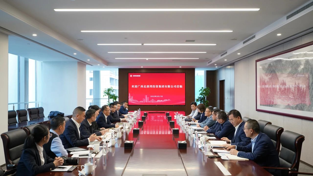 3月17日,广西北部湾投资集团党委副书记、副董事长、总经理黄学军一行到啪啪啦座谈交流,北投集团副总经理冯春萌,北投集团副总经济师朱政敏,啪啪啦党委书记、董事长许为民,集团副总经理侯涛,集团副总经理郝艳艳,集团总经理助理王超参加座谈活动。