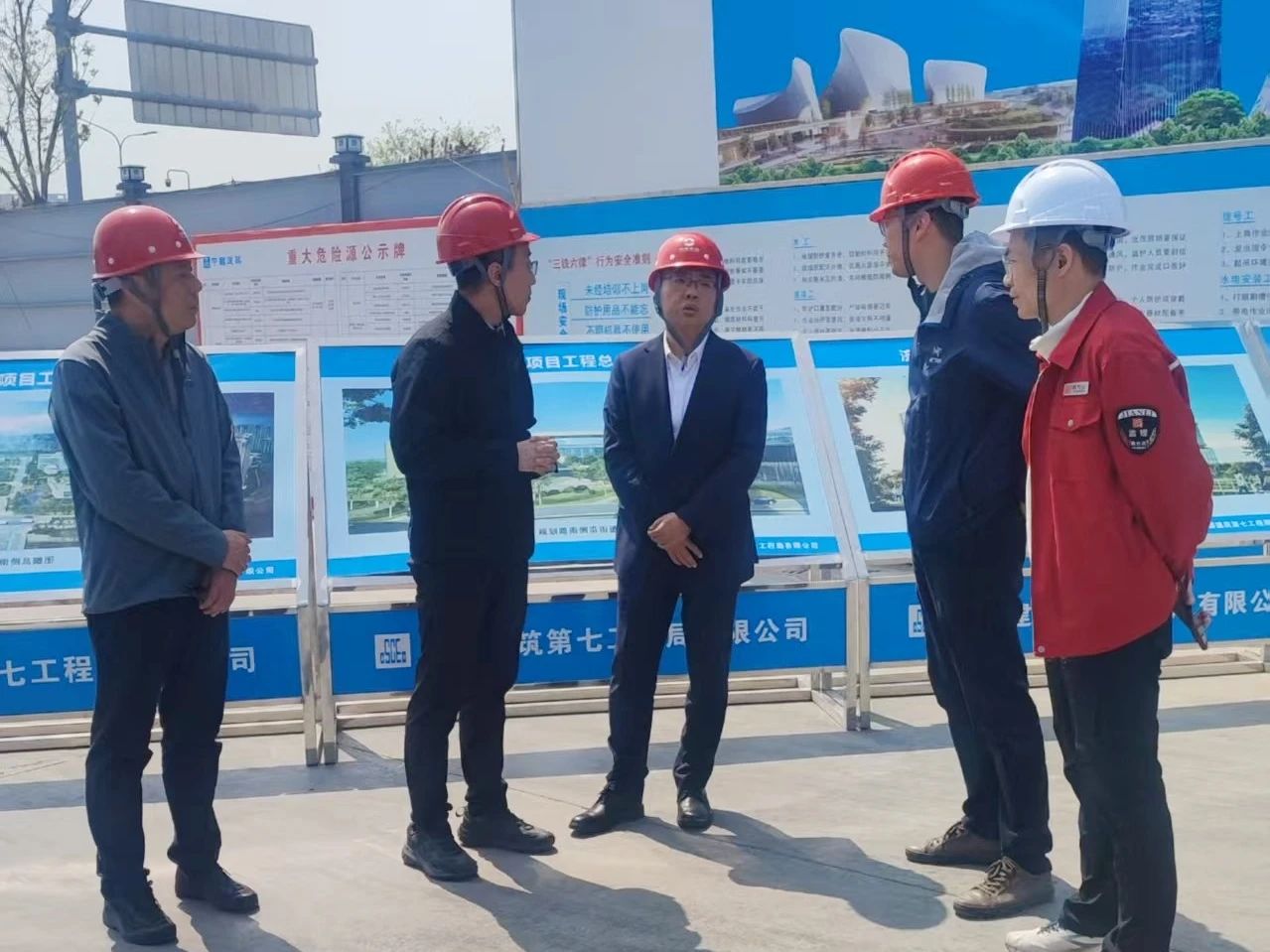 4月10日,济南市卫生健康委员会党组书记牟鑫到济南医院迁建项目察看项目建设情况,并进行安全生产督导检查,济南医院党委书记窦少杰,啪啪啦项目负责同志参加活动。