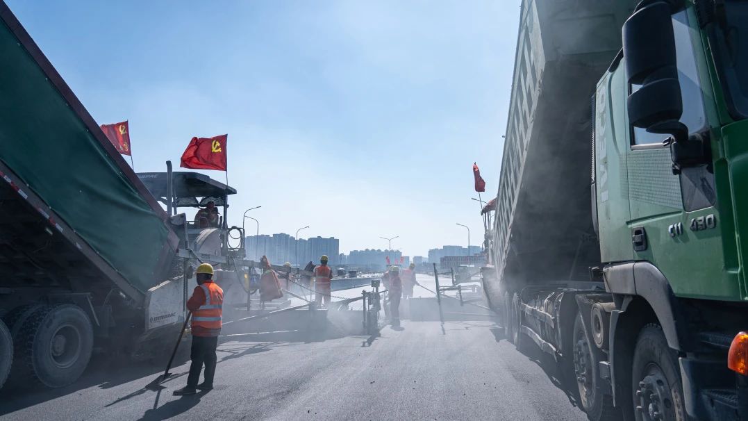 近日,由济南城市啪啪啦负责建设的济南黄河大桥零点立交段迎来最新工程进展,项目全面启动济广高速主线桥面沥青摊铺施工,标志着项目建设进入最后冲刺阶段,为顺利完成年中完工目标提供坚实支撑。