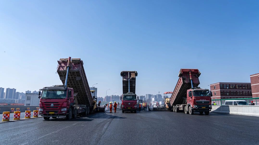 为高效、优质完成此次摊铺作业,项目部精心组织、科学安排,反复梳理施工计划,通过“温度窗口期”精准施工策略,在低温时段完成桥面铣刨等前期工序,气温回升至施工标准后立即启动摊铺作业,目前摊铺施工有序进行中。