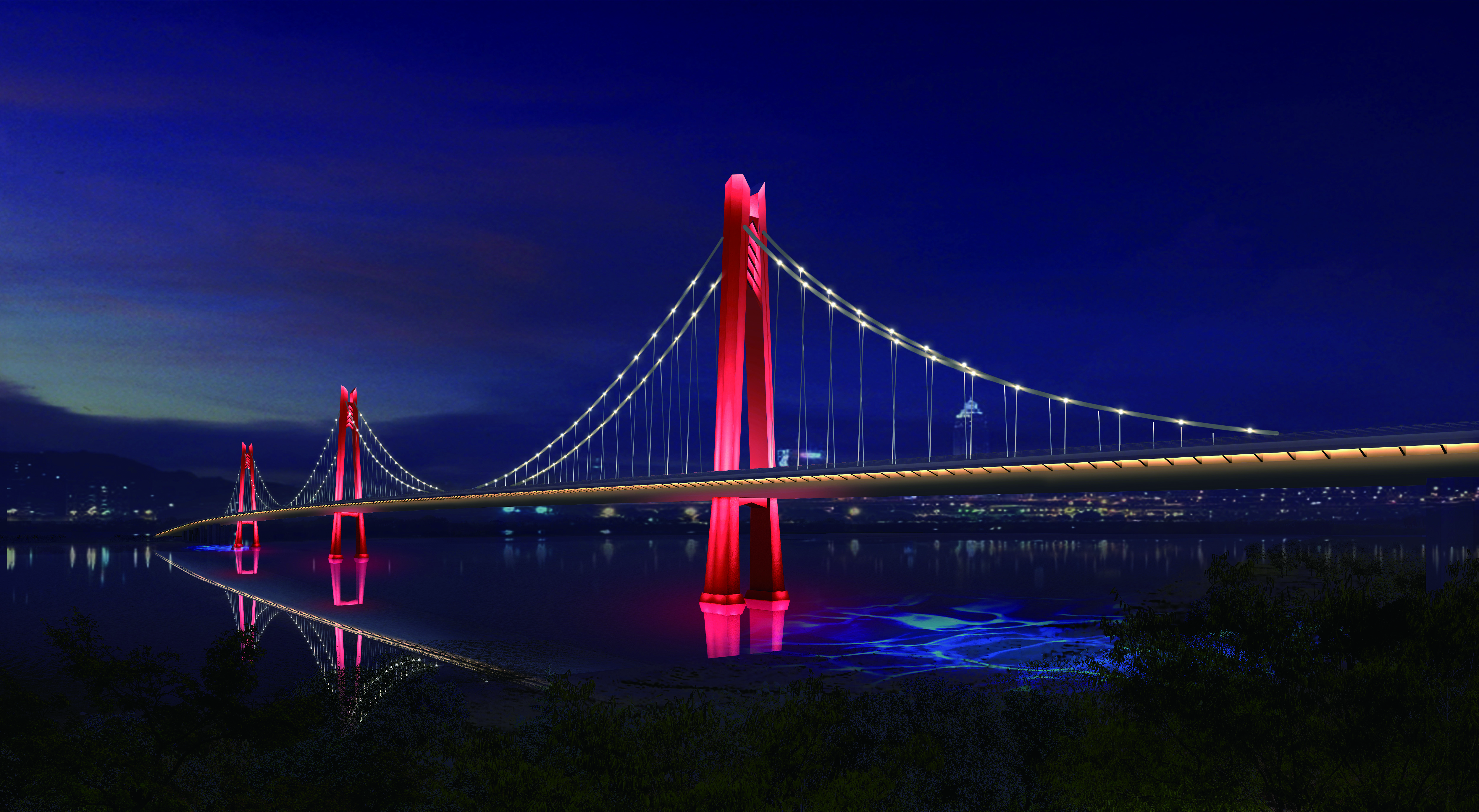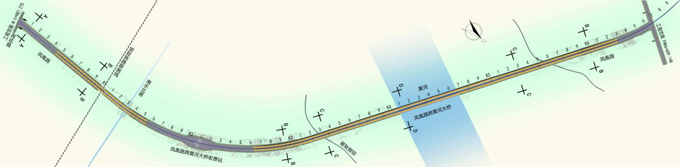 项目按照双向八车道一级公路标准建设,兼顾城市主干路功能,设计速度60公里/小时,跨黄段桥梁范围为公轨合建的桥梁形式,中间预留城市轨道交通空间,满足城市轨道交通纵断面相关技术条件。